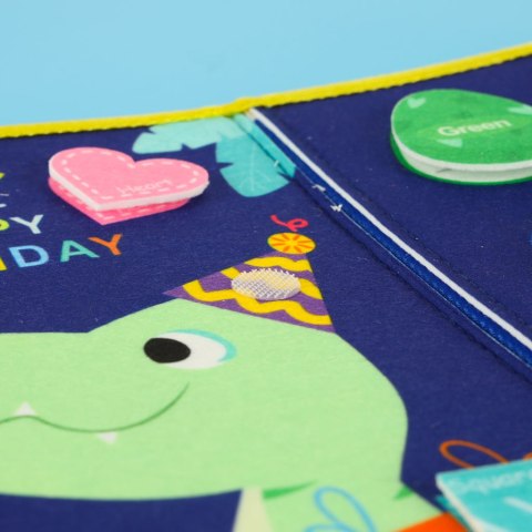 • Filcowe tło z elementami do ćwiczeń manualnych oraz zegarem uczącym dziecko odczytywania godzin